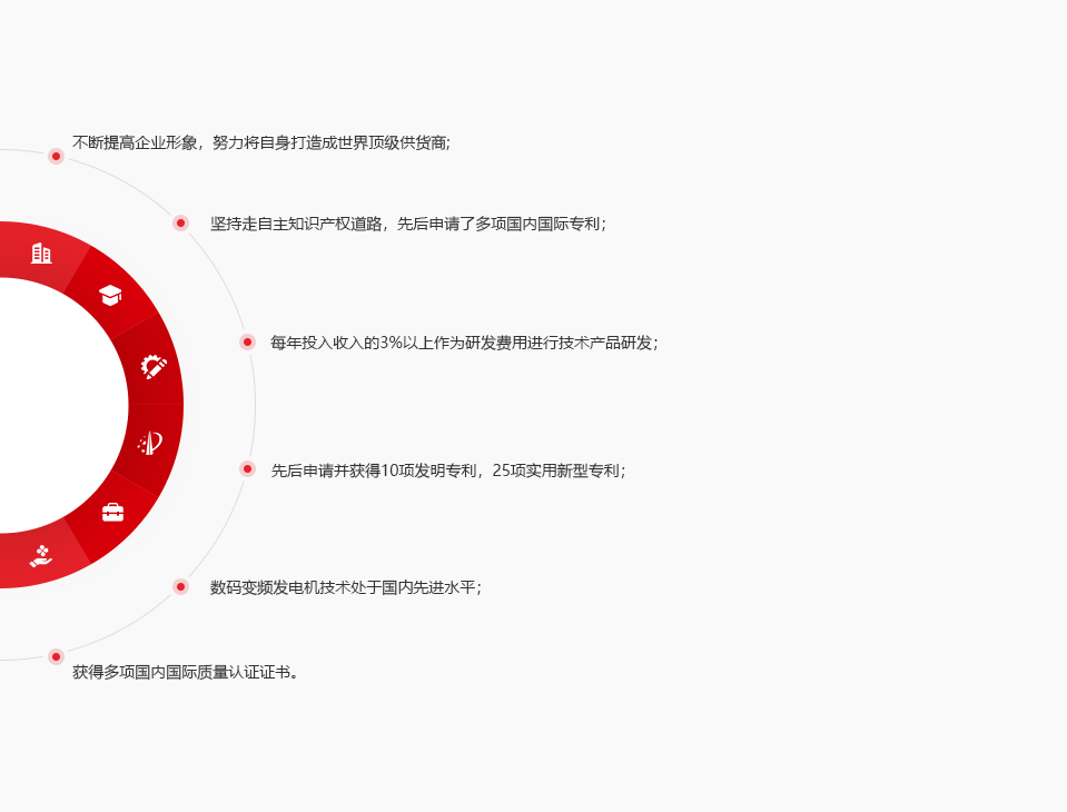 依靠科学管理,以质量取胜,稳步发展,公司质量信用等级被评为AAA级。企业现有TUV、EPA、CE/GS、CARB、ISO9001等证书和国内的汽油机生产许可证。